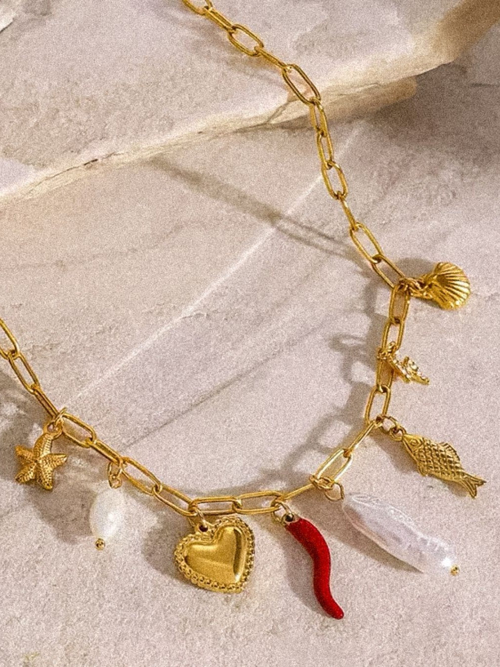 A tiny token of Italian charm. Influenced by coastal traditions and sun-soaked days, this bold necklace acts as a chic talisman against negative energy. Stack it, wear it alone — and absolutely, it’s fully water-resistant.